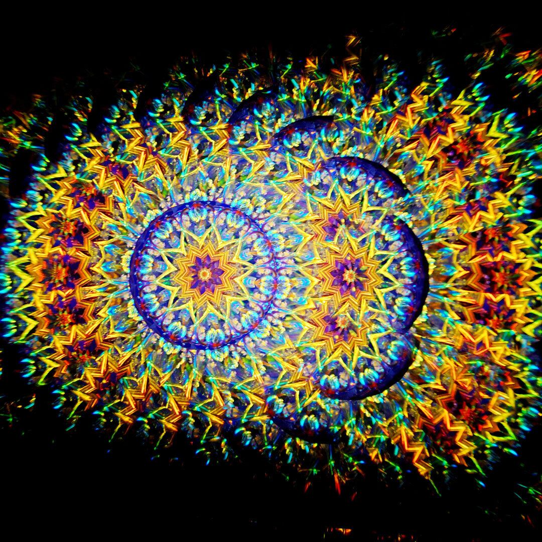 □やや難易度が高いですが、光源に万華鏡の先端を向けた後、少しずつ横に向ける事